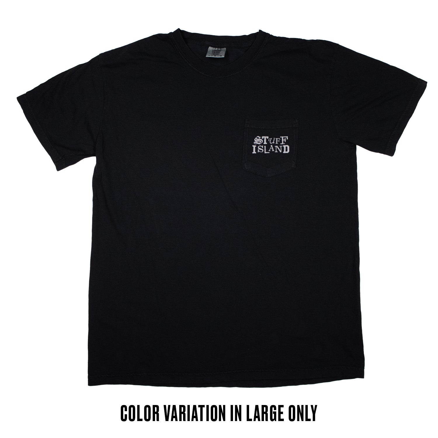They are discharge printed on a nice Comfort Colors tee. The Larges have a color variation due to the garment dye of the tee.
